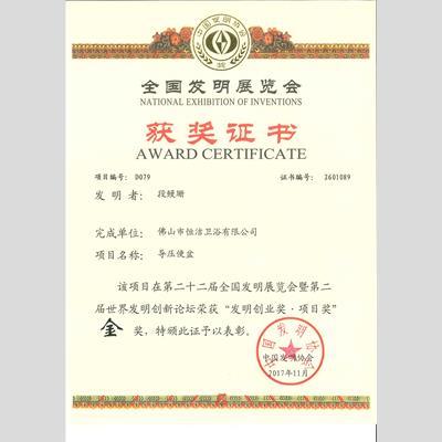 颁发单位:中国发明协会(第22届全国发明展览会暨第二届世界发明创新论坛)