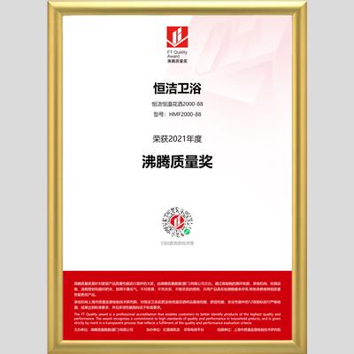 颁发单位:沸腾质量奖家居产品质量性能测评委员会