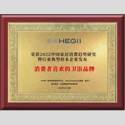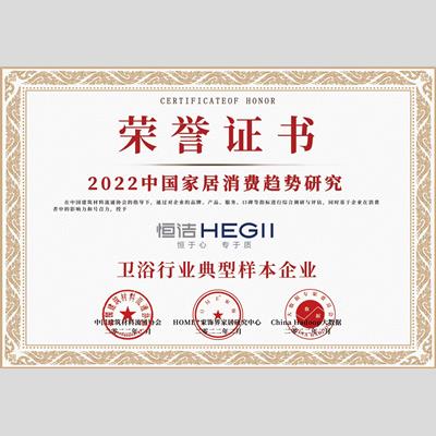 奖 项:2022中国家居消费趋势研究-卫浴行业典型样本企业
