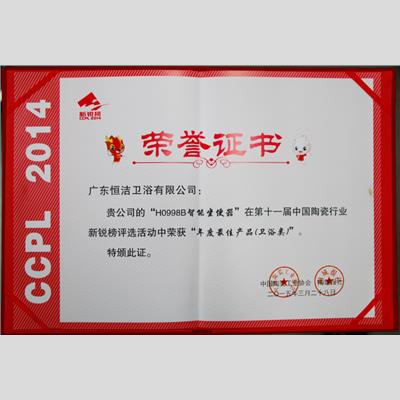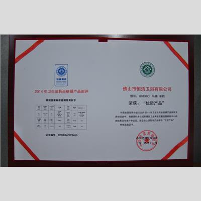 奖 项:H0136D马桶 2014年卫生洁具坐便器产品测评 优质产品