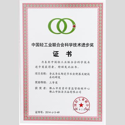 奖 项:中国轻工业联合会科学技术进步奖(项目名称:导流导压陶瓷节水坐便器关键技术的研发)