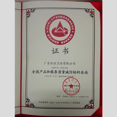 奖 项:全国产品和服务质量诚信标杆企业
