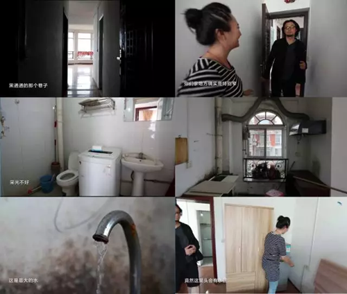 这间面朝湖景房屋由于遭受了十几年的潮气侵蚀早已变成了“浸泡在水中”的状态。房间内三分之二的空间都被180°的圆弧客厅所占用,却又很难利用;走道又暗又窄,卫生间空间极小,没有采光还不通风;厨房和客厅相连,空间同样很小;更让人匪夷所思的是,就在这样一间遇到大雨就会“水漫金山”的房子,却严重“缺水”,由于水压不够,家里的水龙头即便开到最大,也只有细小的水流;进水管竟然还走到了卧室的床头。
