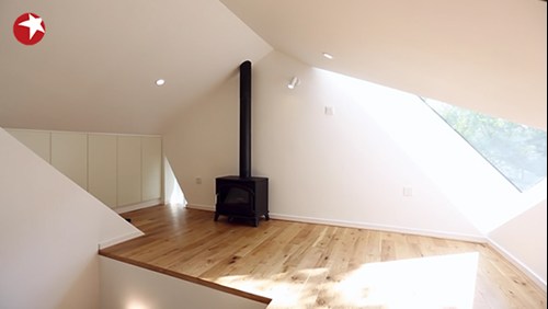 外立面的保温得到保障后,设计师对于室内格局也进行了重新规划。利用房屋高低落差,在二楼做了一个夹层空间作为女儿的卧室。同样为了保温,设计师还给钢结构的梁架穿上了一层厚厚的棉被,为屋顶做了完善的保温工作。