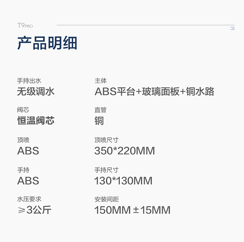 • Φ130mm大面板手持,无级调水,柔和激爽自由定义